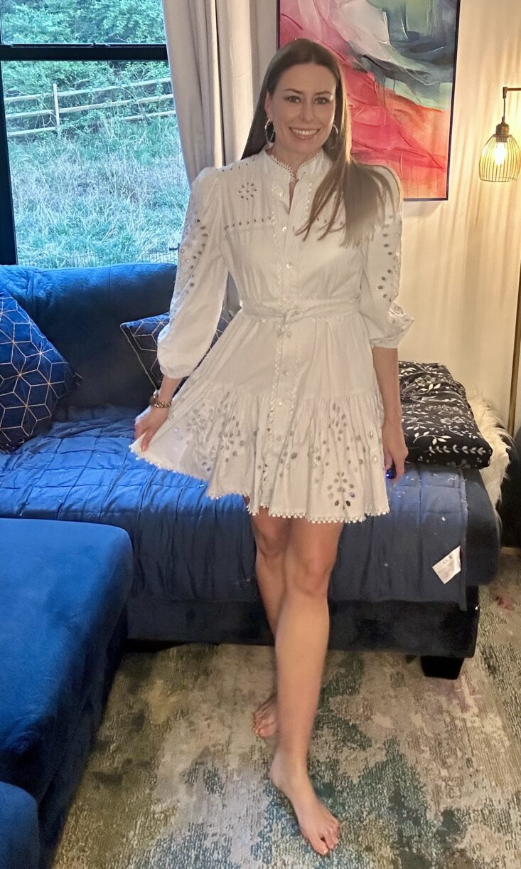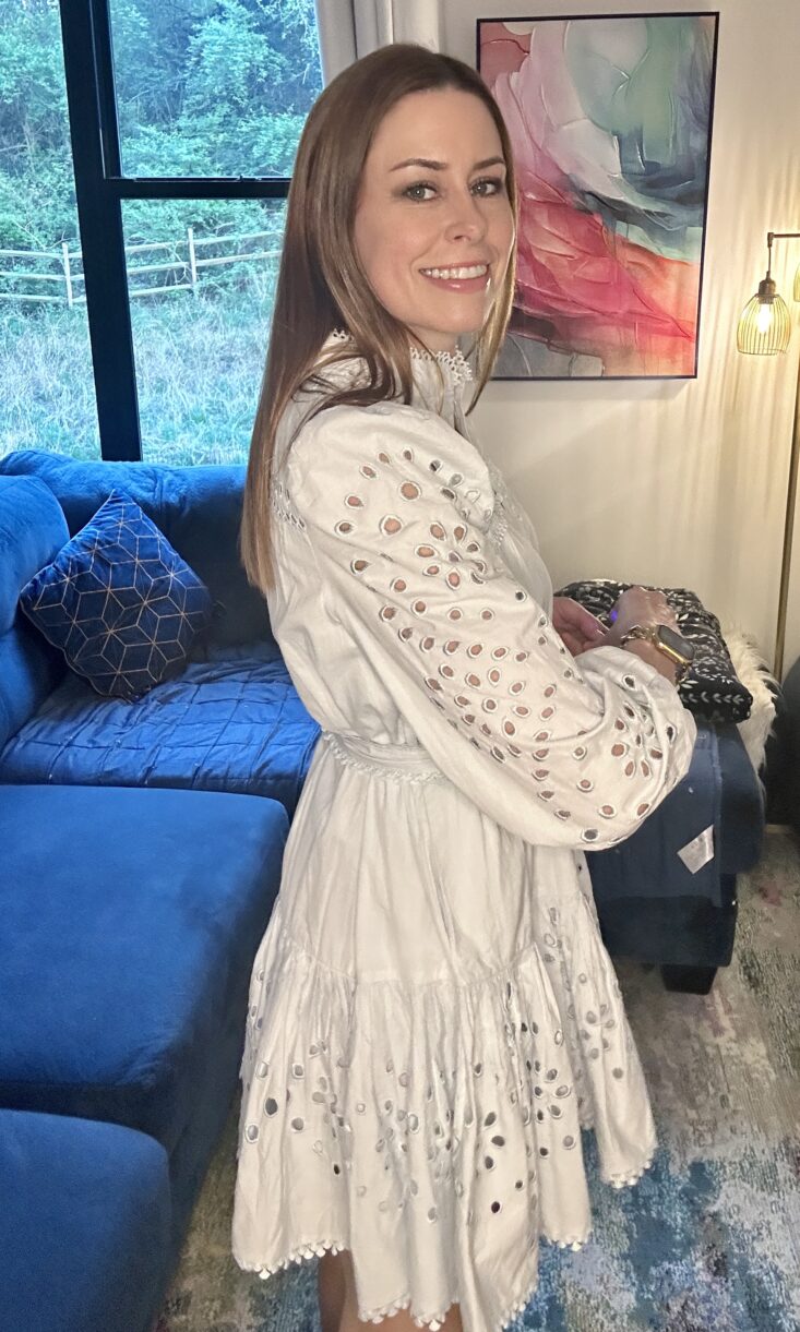 Size & fit: On paper, the Danielle dress is a dream. Crisp cotton, delicate eyelet puff sleeves, a scalloped hem that feels almost too pretty for everyday life. But dreams, as it turns out, don’t always account for hips.