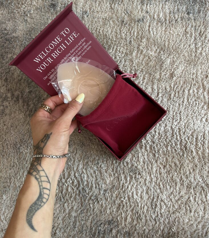 This is what makes sticky CAKES the GOAT: no adhesive in the middle. If you’ve ever peeled off a cheap pair of nipple covers and winced, you know how brutal it can be. CAKES designed a soft, non-toxic silicone cover with a medical-grade adhesive ring around a completely glue-free center — so your nips get protection, not punishment.