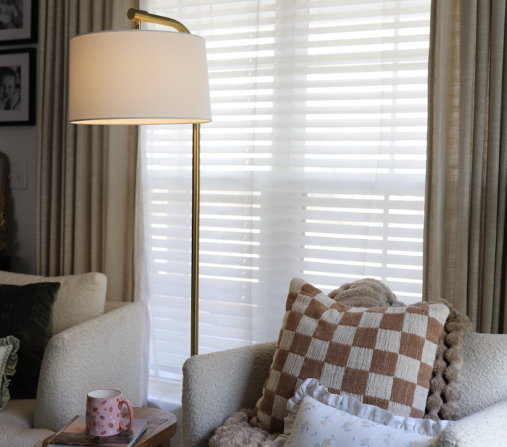 I went with an arc floor lamp in a warm brass finish: clean, modern, not trying too hard.