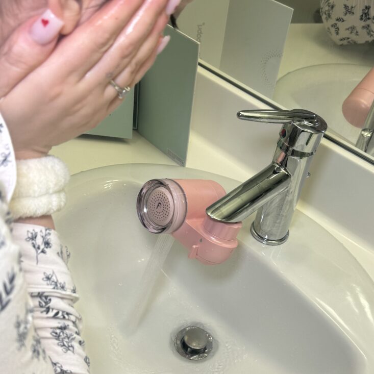 So, my newest, most miraculous skincare tool is the FilterBaby because of how effective it is in filtering contaminants and chemicals that are so harsh on our skin. This skincare-centric water filter removes 99% of physical contaminants as small as 0.1 microns so that your skin can be cared for how it should be.