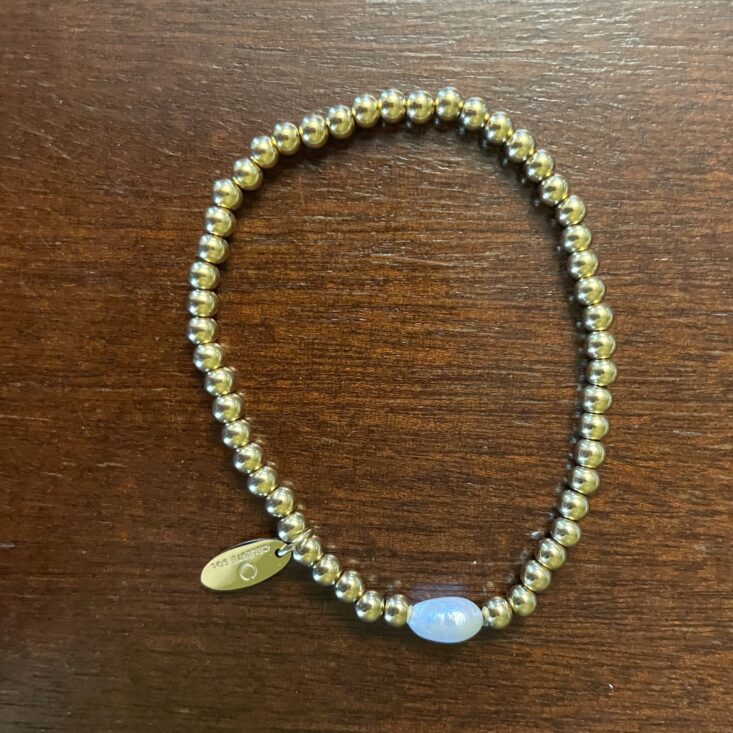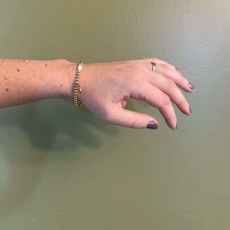 Every bracelet that comes my way has the high probability of being part of a stack. This one is a little more elevated than my usual daily selections, but I recently tossed it on with a gold watch for a funeral, and they felt really nice together. The single freshwater pearl is such a sweet touch. This bracelet is hypoallergenic and water resistant—I know Beachly would never send something that couldn't tolerate a little sea spritz.