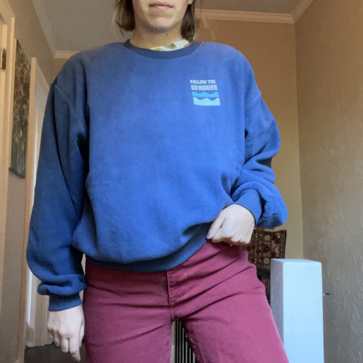 I'm not always a full matching sweatsuit kind of gal, because sometimes I need real pants to signal for my brain to turn on in the morning. But once I put the set on together I most definitely did not take it off. The sweatshirt has a classic fit. I probably could've sized down, but I do appreciate how easy it is to wear a little oversized.