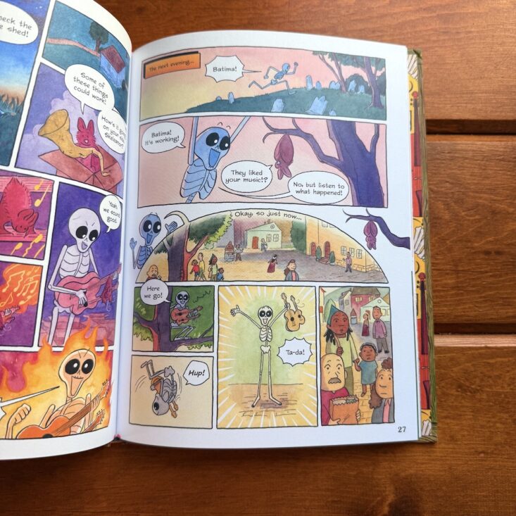 Charlie loves graphic novels, so he was especially excited to see that this one wasn’t just a graphic novel—it was also a hardcover and had a skeleton on the cover! With bright, fun illustrations, the visuals are instantly engaging, and the story holds up just as well. Charlie got a kick out of the skeleton’s silly puns and appreciated the overall humor throughout. He read it in one sitting, laughing along the way, and really enjoyed the cheerful ending.