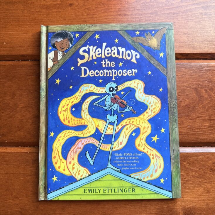 Skeleanor loves music more than life itself. There’s just one problem: She has a bit more rattle than rhythm at the moment. No matter what type of instrument she plays—from the fiddle to the xylobone—she always seems to scare the people of Little Casketon away. But with the Little Casketon Summershine festival coming up, and the town band missing a player, maybe Skeleanor (along with the help of her best friend, Batima) could show people her skills and finally take center stage. Hilarious and heartfelt, Skeleanor the Decomposer by debut author and illustrator Emily Ettlinger is a story about chasing your passions no matter what other people say. Sometimes, all you need is a dream, your friends, and a little music.