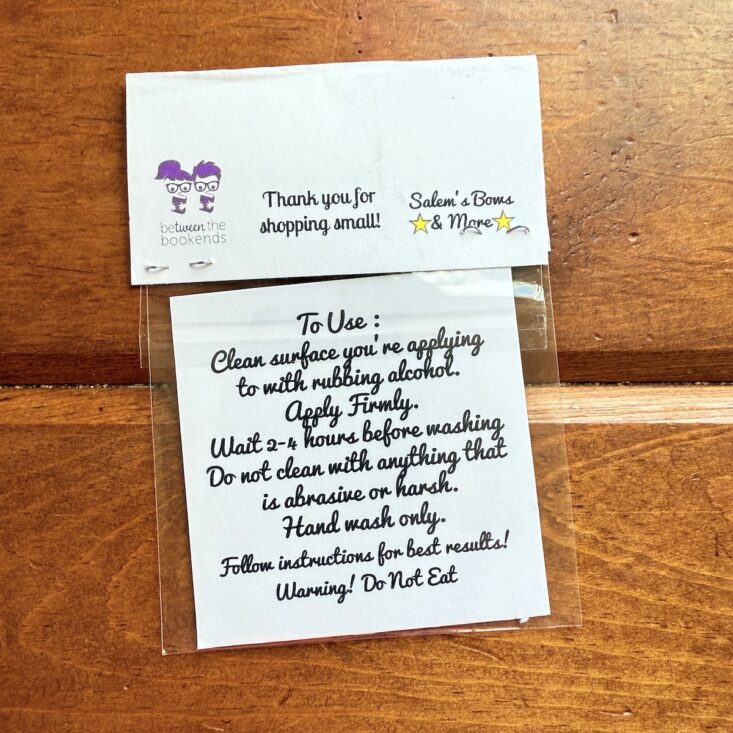 To start off the box, we go through the included pamphlet. Describing the month's theme and the contents of every Between the Bookends version, this little book lets us know exactly what the box contains, along with a bookish quote, social media info, and a hint about next month's theme. "Clothes make a statement. Costumes tell a story." - Mason Cooley