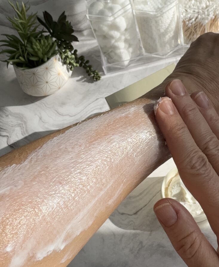 What surprised me most? How simple this routine is. I just use the exfoliant in the shower, then apply the treatment afterward. That’s it. Two steps, a couple of minutes a day, and it fits into my life without any fuss. Even still, it feels so luxurious.