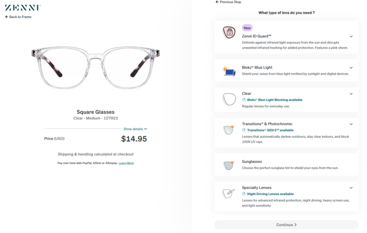 Zenni walks you through lens options step by step, explaining each choice in plain language. I selected what matched my needs and took my time reading through everything.