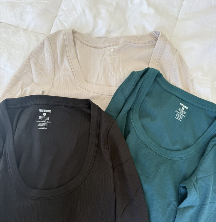 Lately, that base has been the True Classic Women’s Ribbed Long Sleeve Scoop Neck. It’s one of those pieces that quietly earns its place in your closet. The hype is real, but it’s subtle. You don’t put it on and think “statement top.” You put it on and think, oh… this just works.