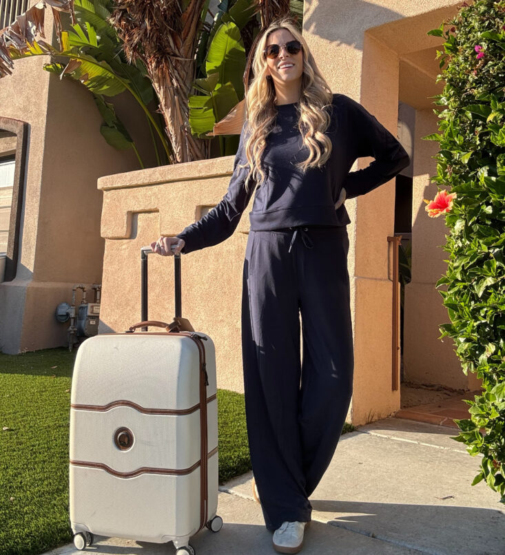 I wore it on a cross-country flight and realized halfway through the trip that I hadn’t adjusted anything, tugged at anything, or felt uncomfortable at all. The lightweight, breathable fabric kept me cool even in a warm cabin, and the fit allowed me to move, stretch, and nap without any weird bunching. When I landed, the set still looked crisp and put-together—no wrinkles, no stretching, no sloppy shape.