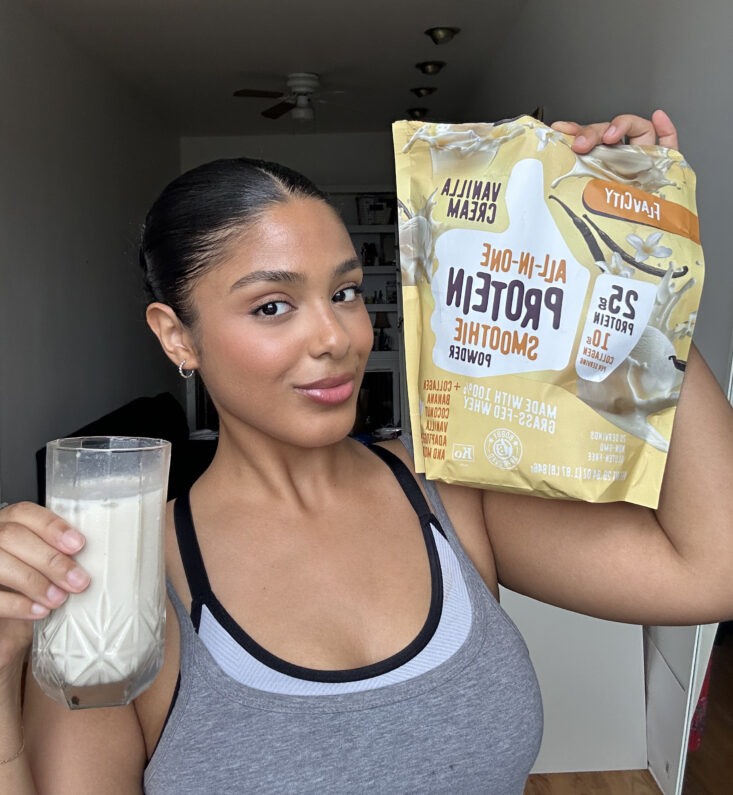 The Vanilla Cream Protein Powder I’ve been using tastes like a classic creamy milkshake — no joke. And it includes all of the above in one scoop, meaning I’m not chasing down extra ingredients or worrying if I’m “missing something.”
