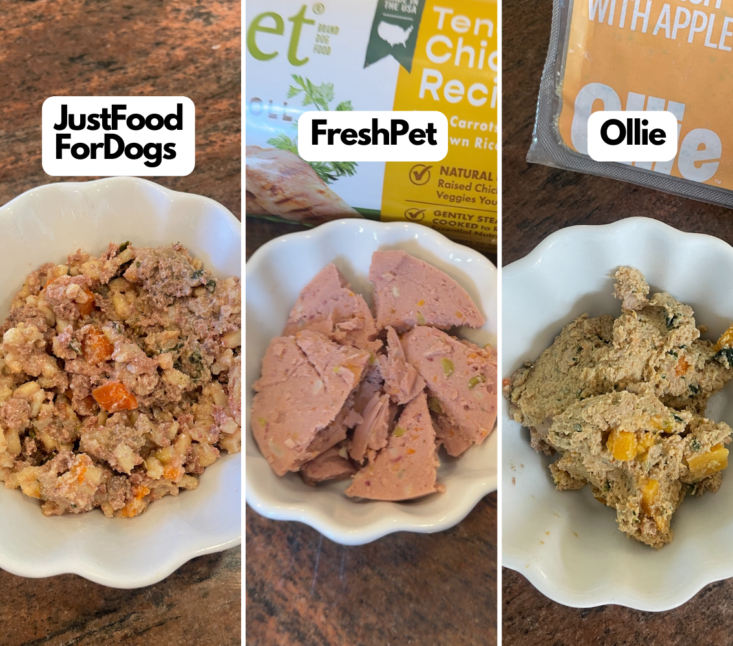 Since Tidley can’t shop for herself, I recently grabbed three popular dog food brands for a little test: Just Food For Dogs, Freshpet, and Ollie. Here's how they stacked up against each other in a tail-wagging showdown:
