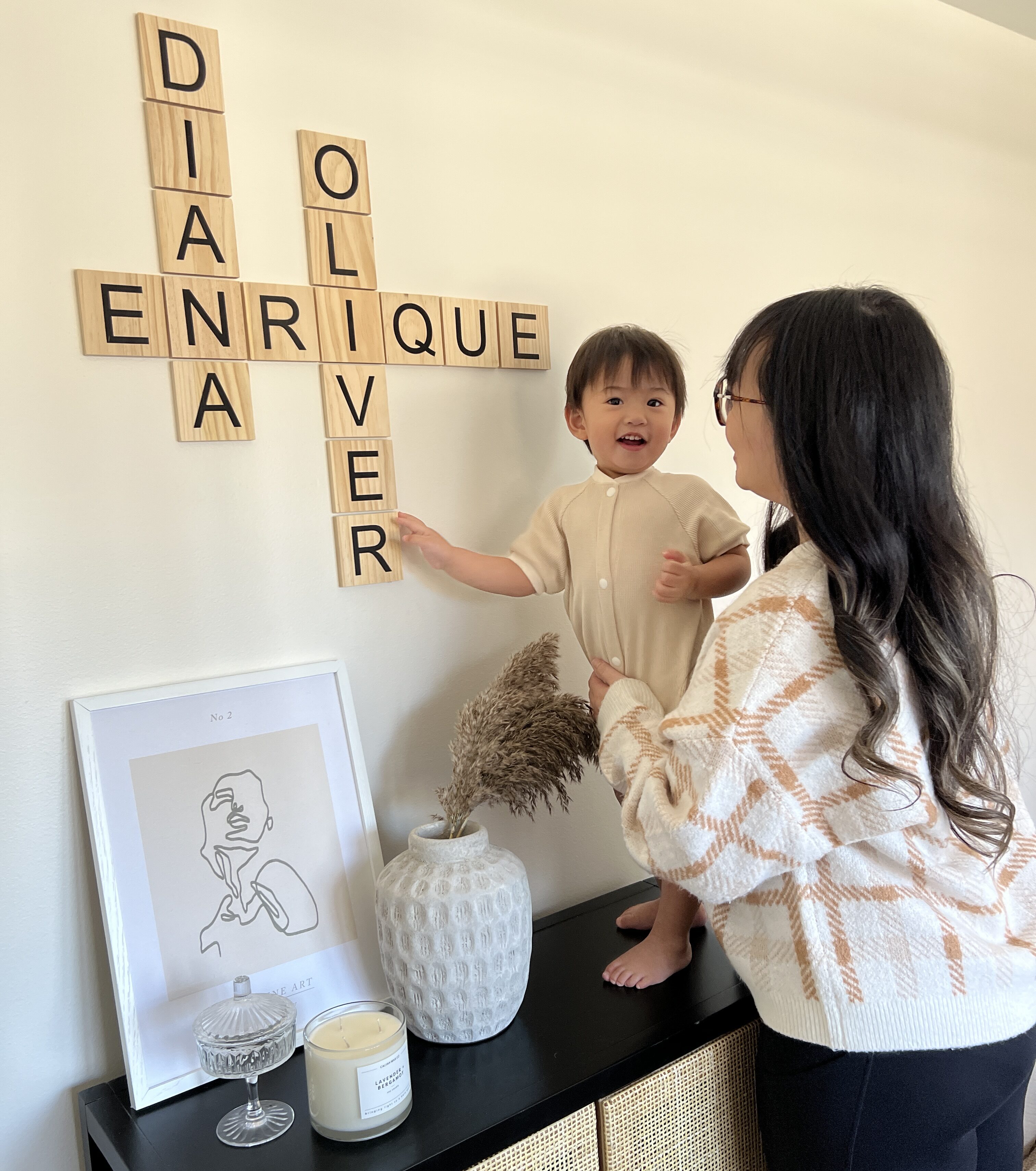 Stiles’ Crossword Tiles are sure to resonate because they can be customized with a personal flair. For mine, I requested the names of our family members, but I’ve seen others use family values, and even pet names!
