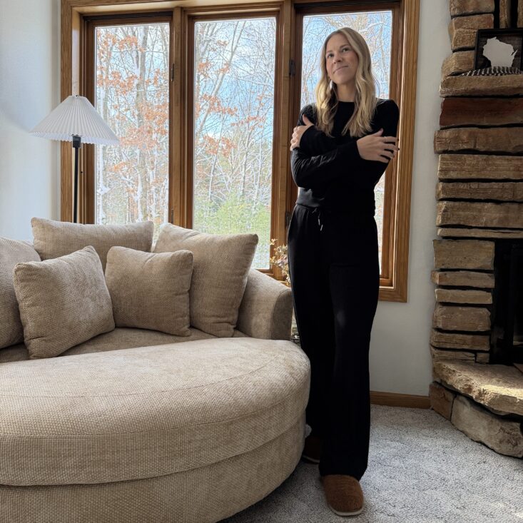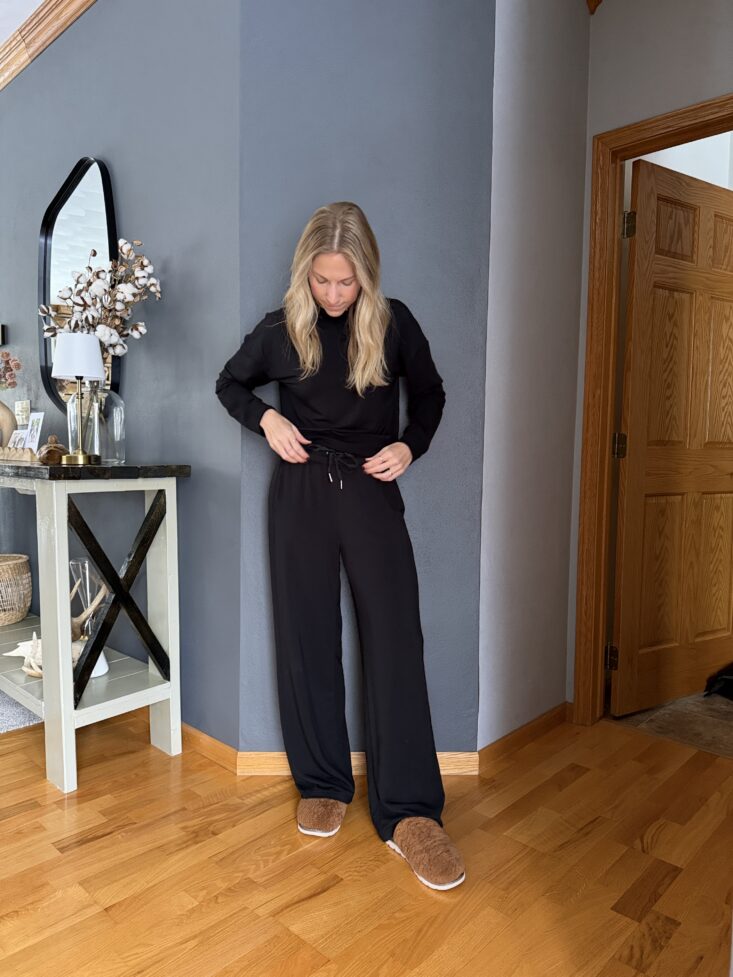 Put the two together and you end up with an outfit that looks styled even though it takes no effort at all. It has that quiet luxury feel without being fussy. It is relaxed enough for the couch but polished enough for actual plans.