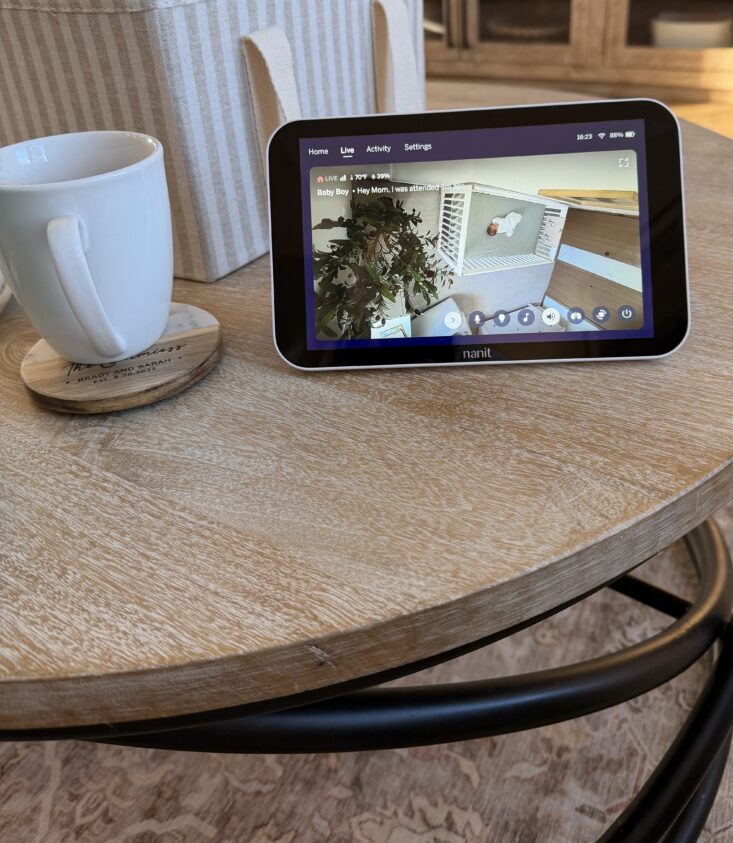 The NEW Nanit Home 8” Display pairs seamlessly with the Nanit Smart Baby Monitor and app, making check-ins effortless. It’s perfect for parents who want a dedicated screen in the nursery without always reaching for their phone -and it blends naturally into daily routines.