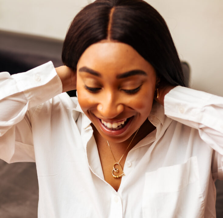 I'm over-the-moon in love with my gold heart necklace, which has the names of my three children engraves on the beads. I haven’t taken it off since I got it—it’s that special to me.