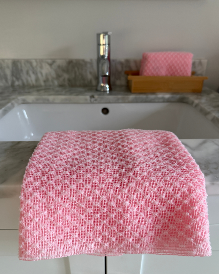 Crafted with a traditional Japanese hexagon weave, this towel gently exfoliates to remove dead skin, smooth out rough patches, and help unclog pores. You’ll notice softer, fresher skin after just one use.