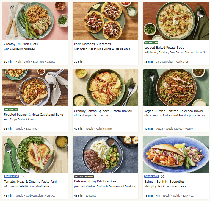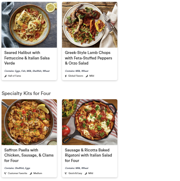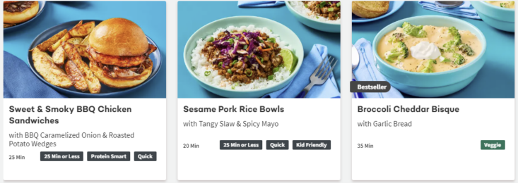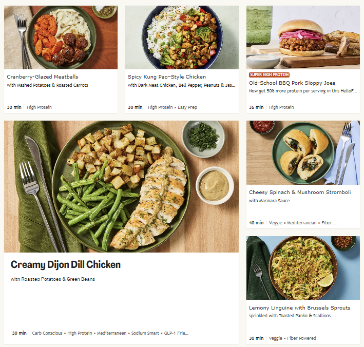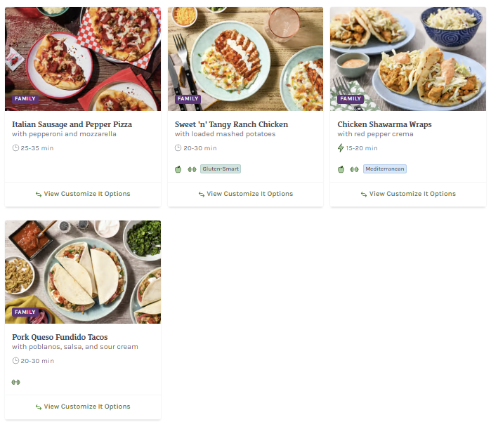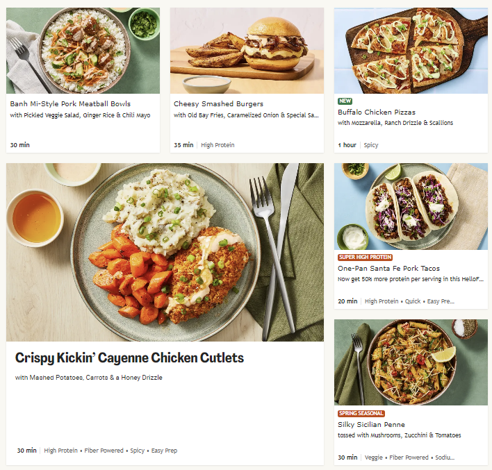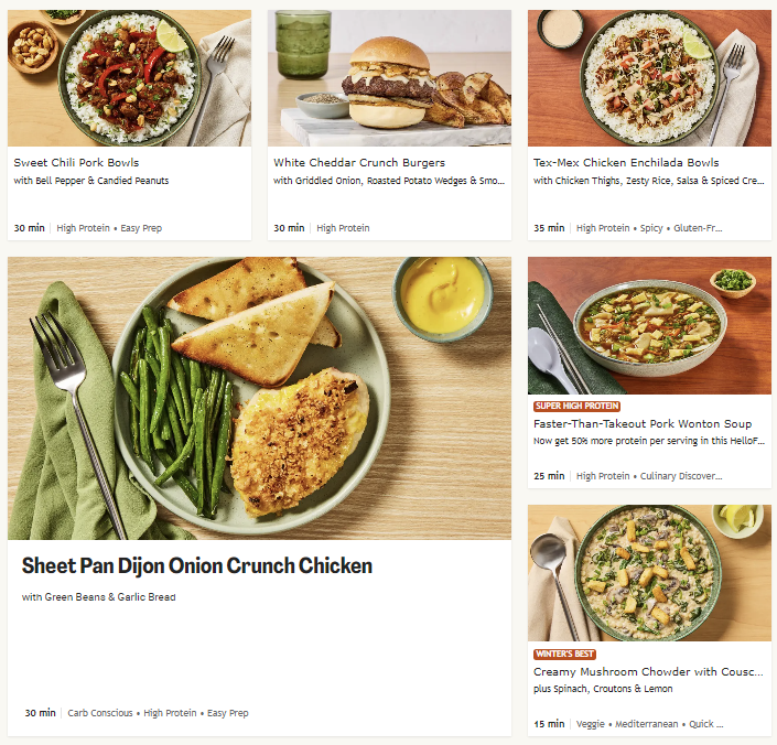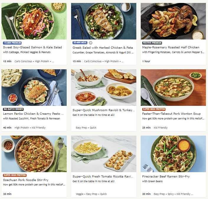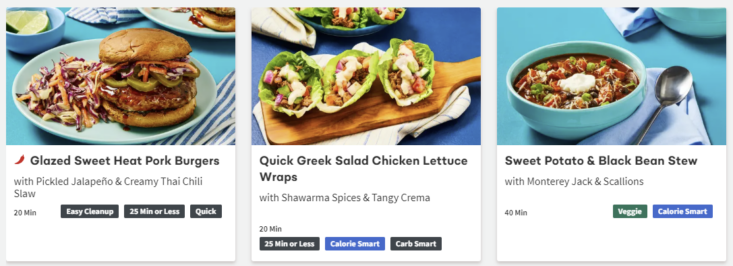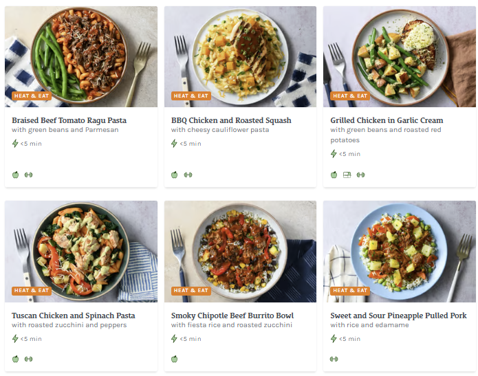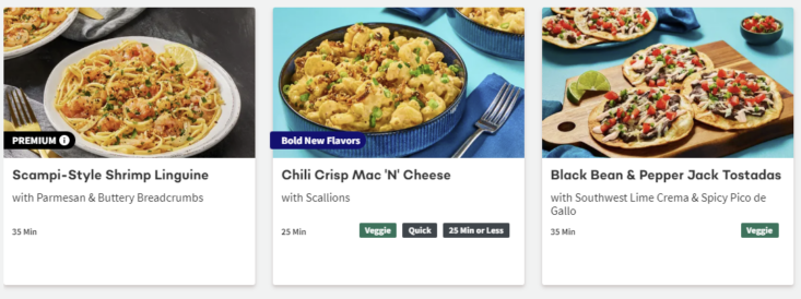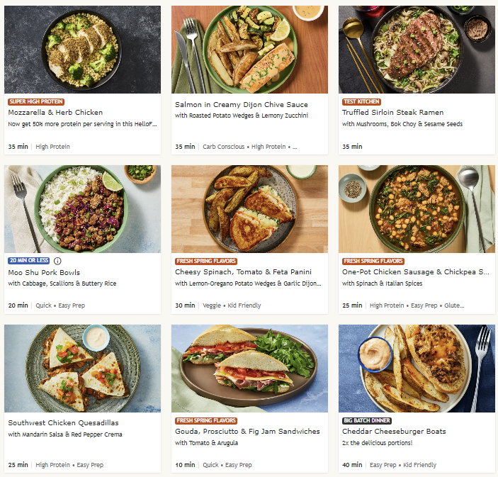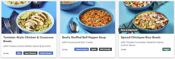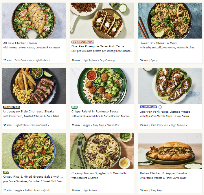 About this Meal Kit: HelloFresh offers quality pre-portioned ingredients and easy-to-follow recipes that you can choose week-by-week. Their plans include Veggie, Meat & Veggie, Low-Calorie, and Family-Friendly, and their menu rotates weekly.