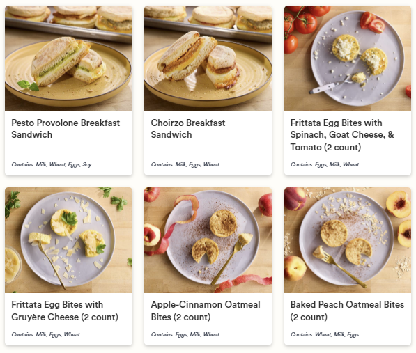 - Frittata Egg Bites with Spinach, Goat Cheese, & Tomato (2 count), Contains: Eggs, Milk, Wheat