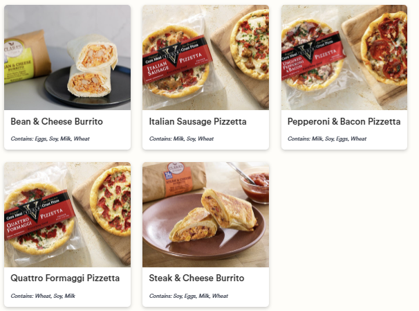 - Petite Broccoli & Cheddar Quiche, Contains: Milk, Eggs, Wheat, Soy
