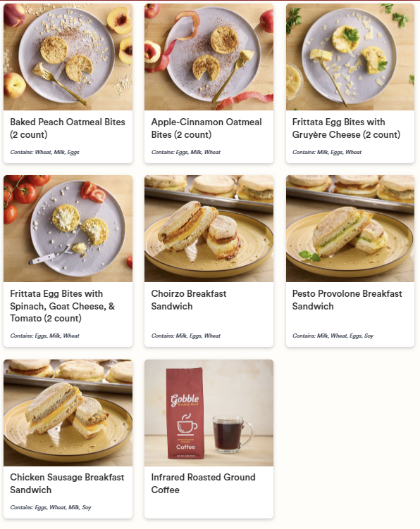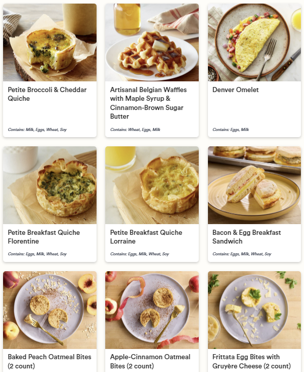 - Frittata Egg Bites with Spinach, Goat Cheese, & Tomato (2 count): Contains: Eggs, Milk, Wheat