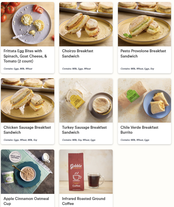 - Chicken Sausage Breakfast Sandwich: Contains: Eggs, Wheat, Milk, Soy