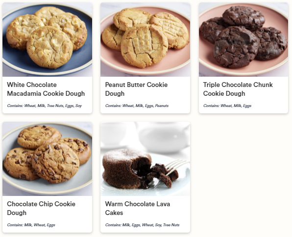 - Triple Chocolate Chunk Cookie Dough: Contains: Wheat, Milk, Eggs