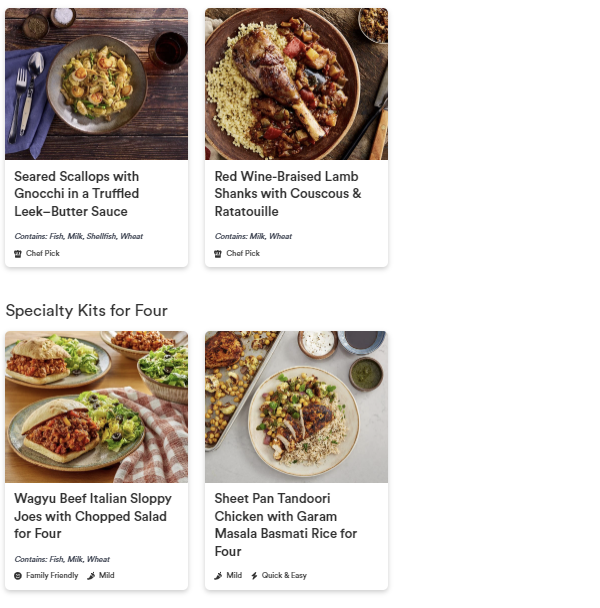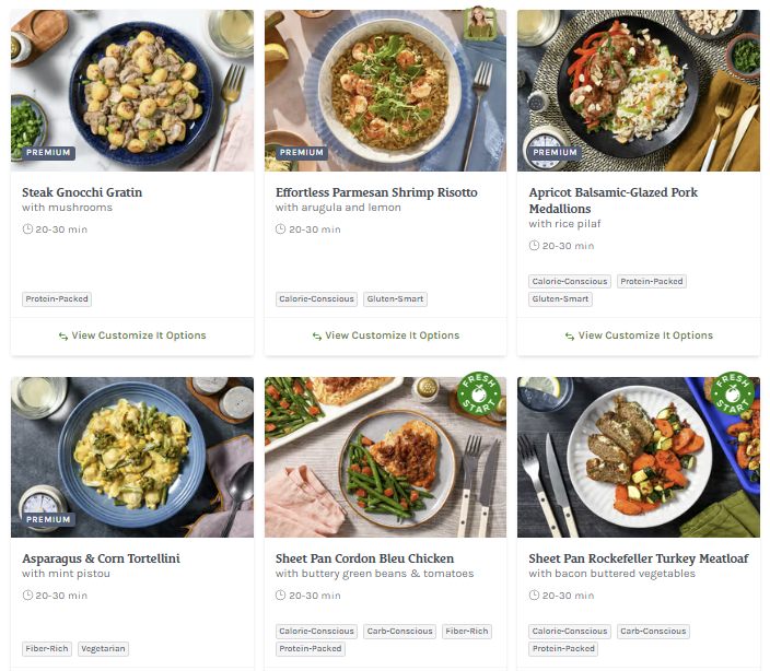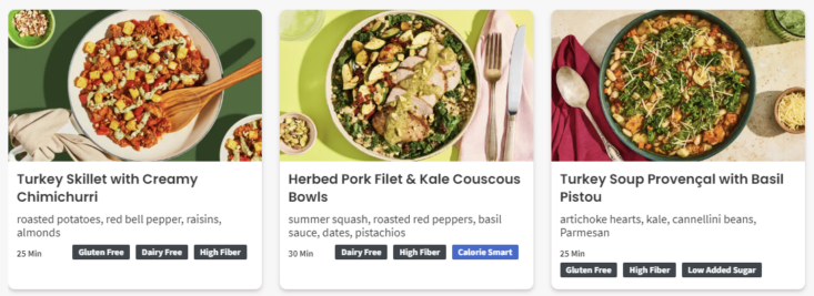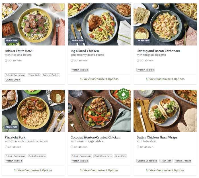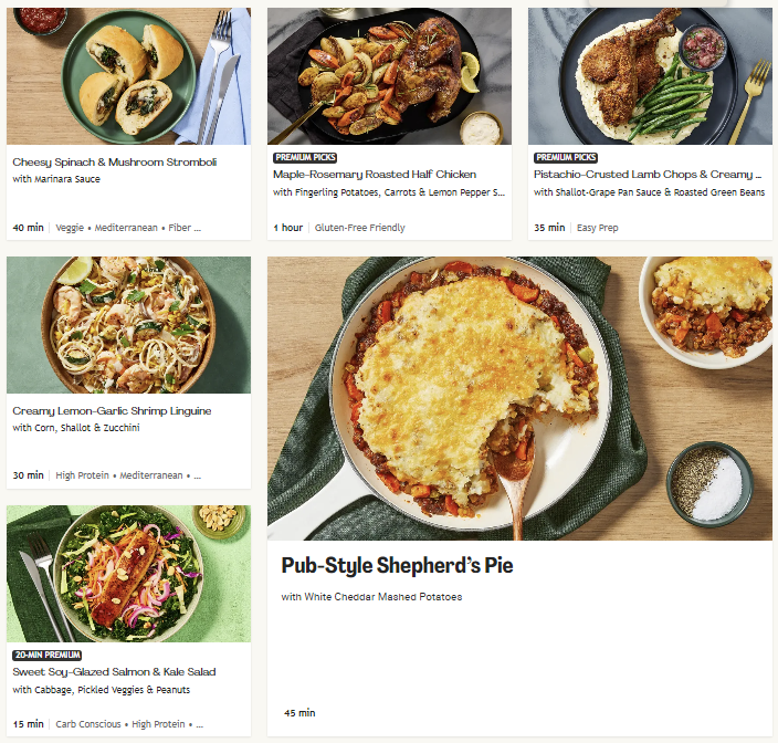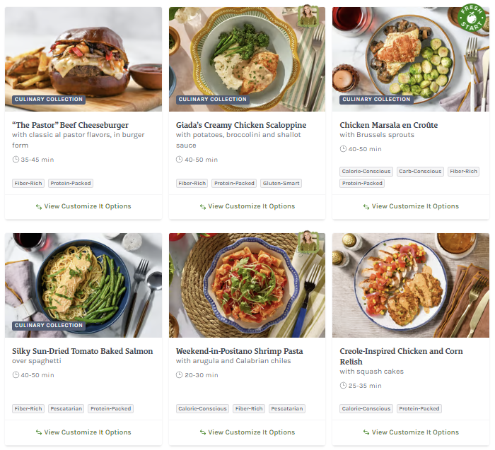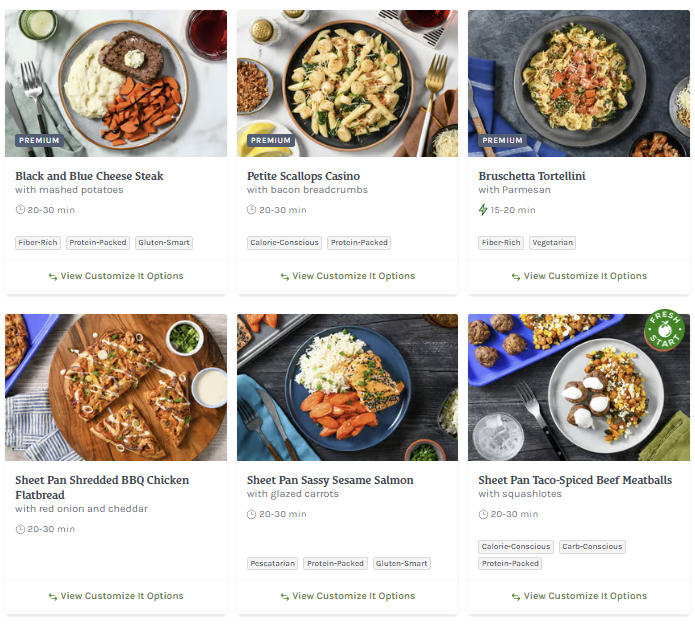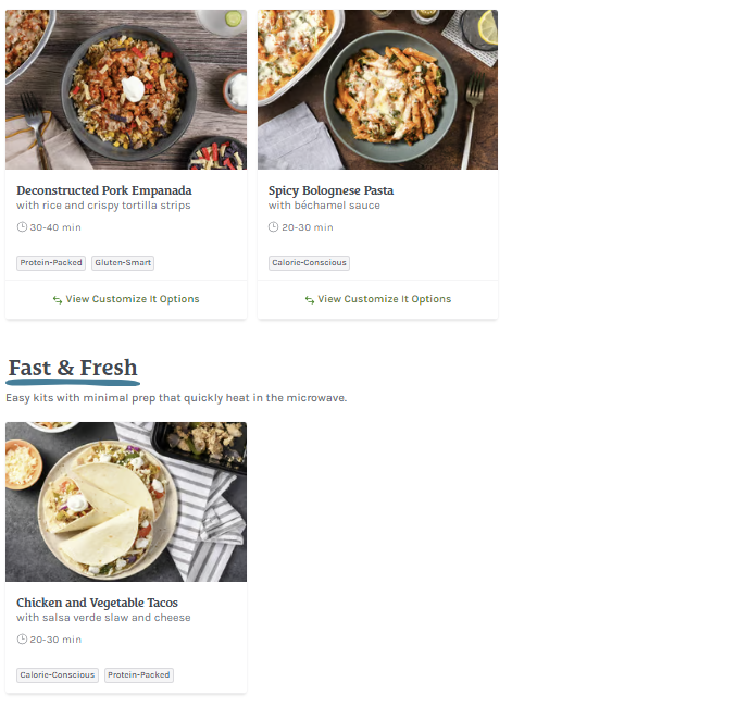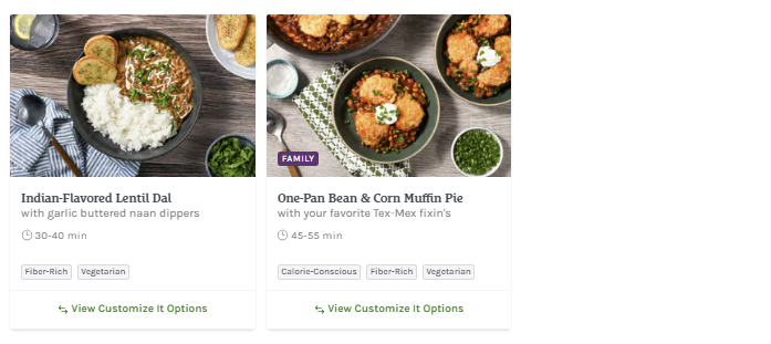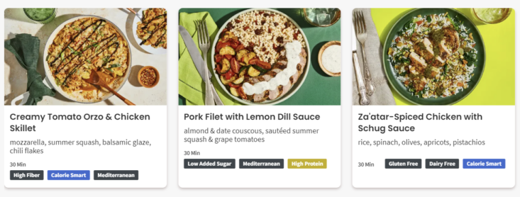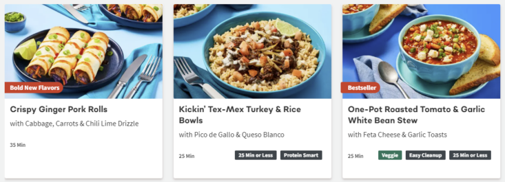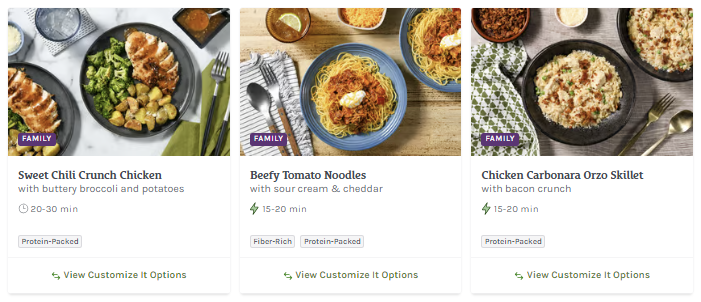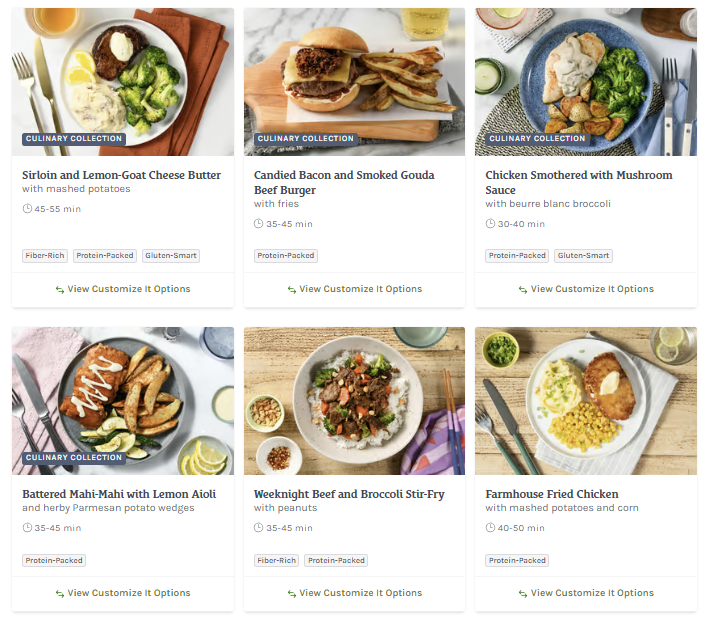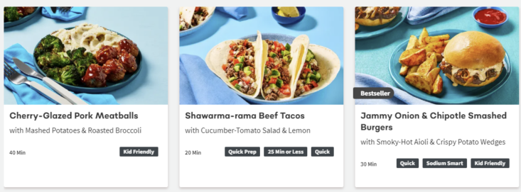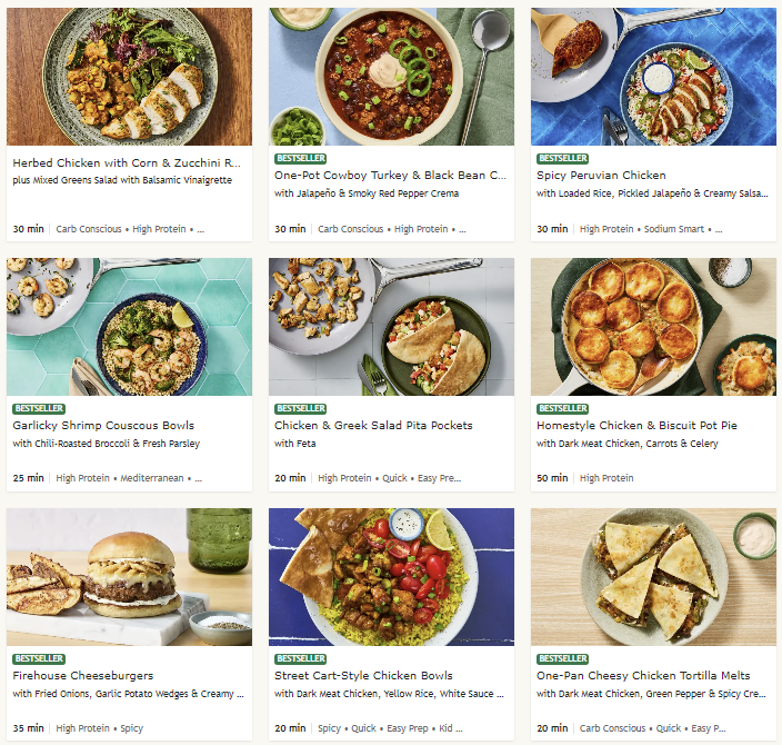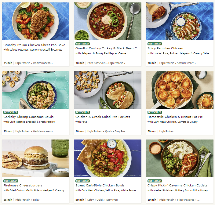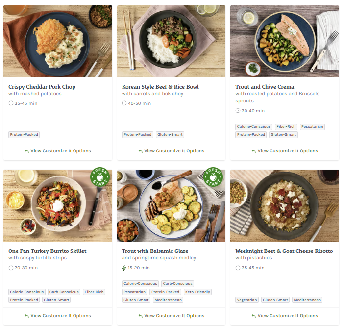 About this Meal Kit: Home Chef is a meal kit subscription that delivers a weekly box of the pre-portioned ingredients needed to make two to six meals that feed two, four, or six people. Recipe cards are easy to follow, and meals can be made in about 30 minutes. For those with dietary restrictions, Home Chef points out recipes that are calorie-conscious, carb-conscious, and vegetarian. Picky about your protein? Most meals allow you to customize whether recipes include chicken, steak, or seafood; some recipes can even be made vegetarian-friendly by opting for Impossible (meatless) meat!