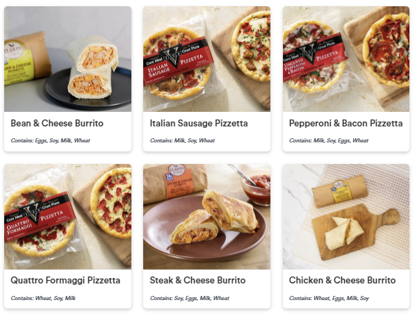 - Chicken & Cheese Burrito, Contains: Wheat, Eggs, Milk, Soy