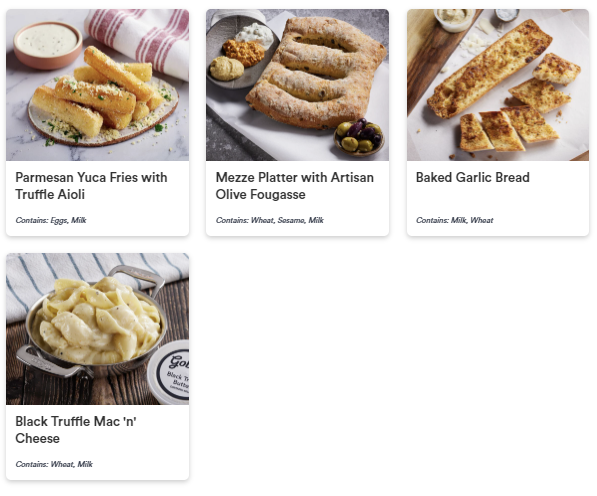 - Black Truffle Mac 'n' Cheese, Contains: Wheat, Milk
