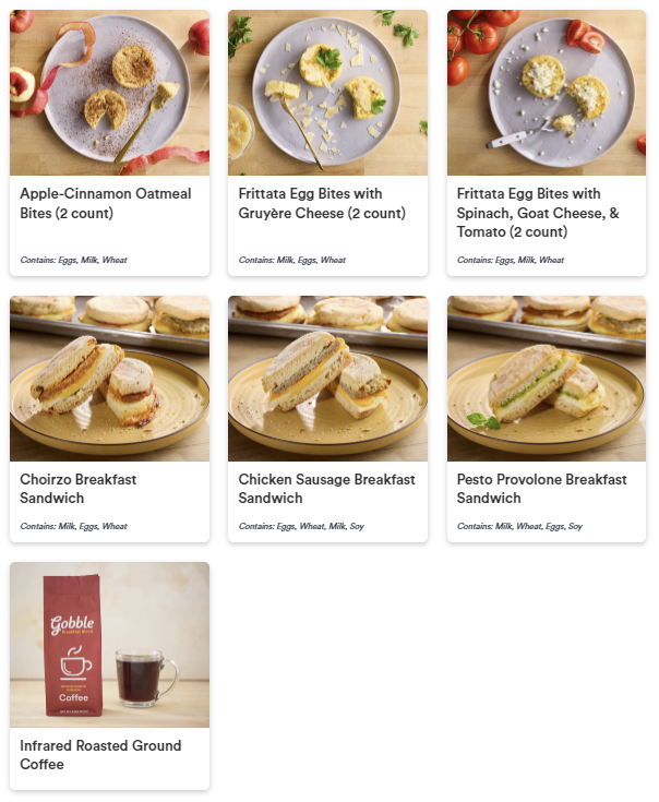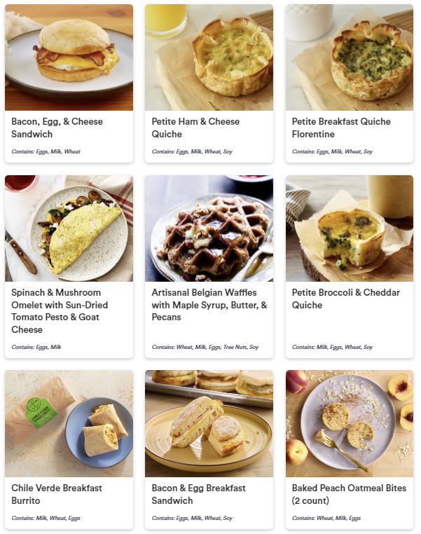 - Pesto Provolone Breakfast Sandwich, Contains: Milk, Wheat, Eggs, Soy