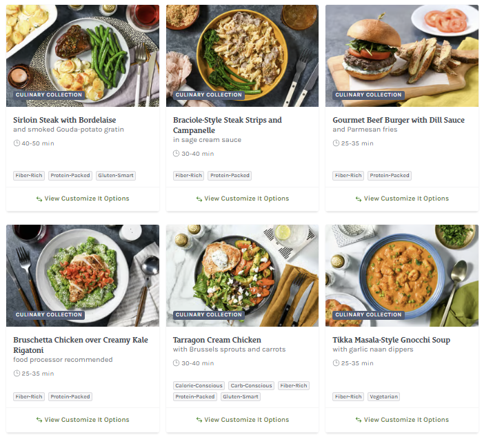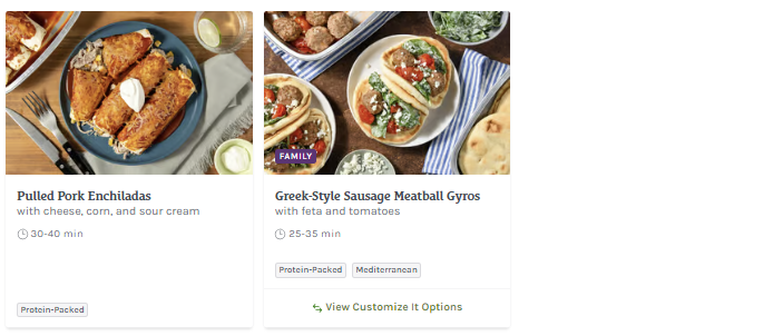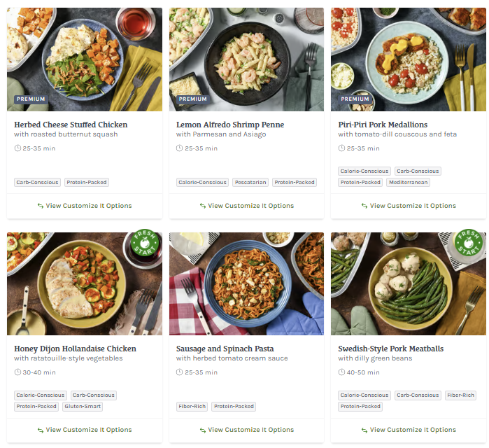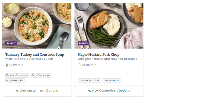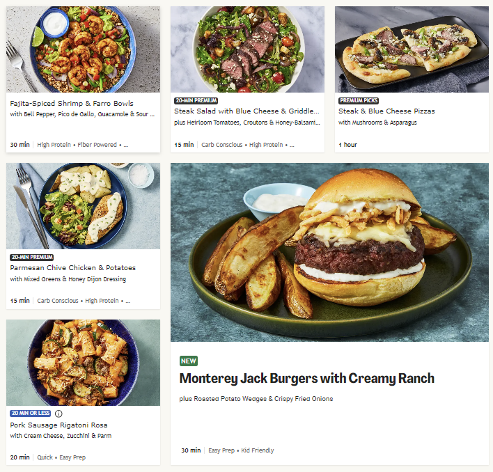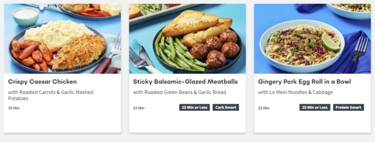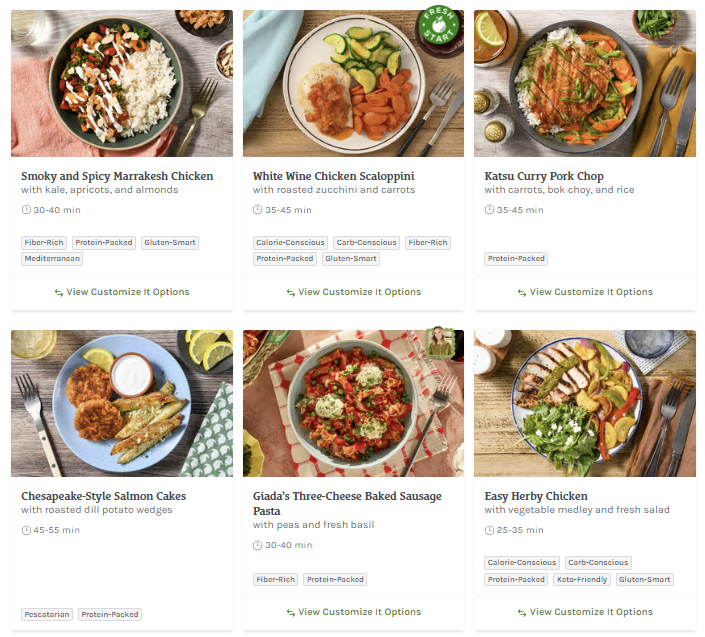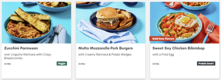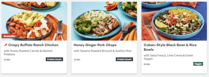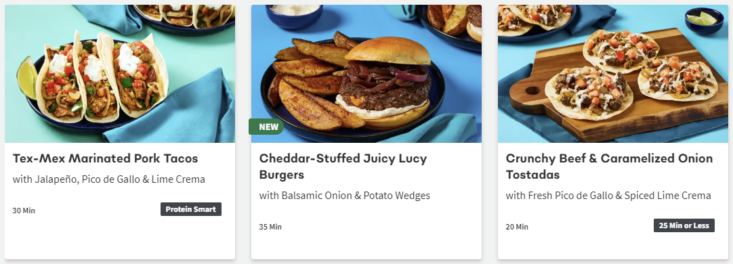 About this Meal Kit: Home Chef is a meal kit subscription that delivers a weekly box of the pre-portioned ingredients needed to make two to six meals that feed two, four, or six people. Recipe cards are easy to follow, and meals can be made in about 30 minutes. For those with dietary restrictions, Home Chef points out recipes that are calorie-conscious, carb-conscious, and vegetarian. Picky about your protein? Most meals allow you to customize whether recipes include chicken, steak, or seafood; some recipes can even be made vegetarian-friendly by opting for Impossible (meatless) meat!